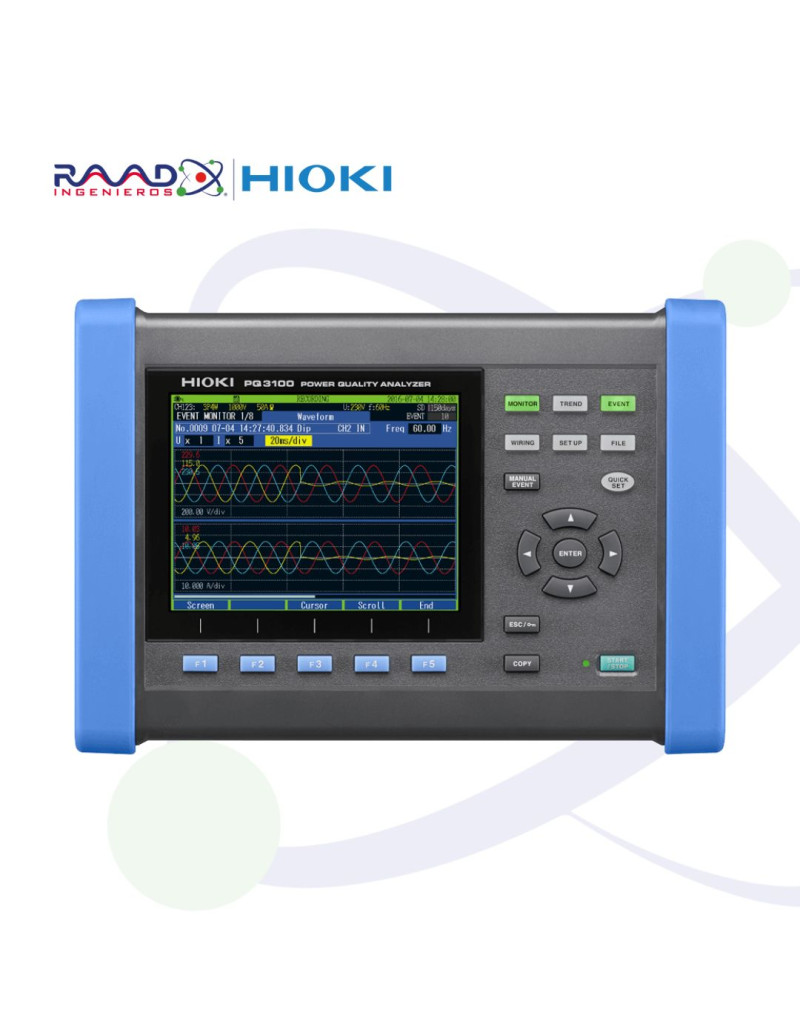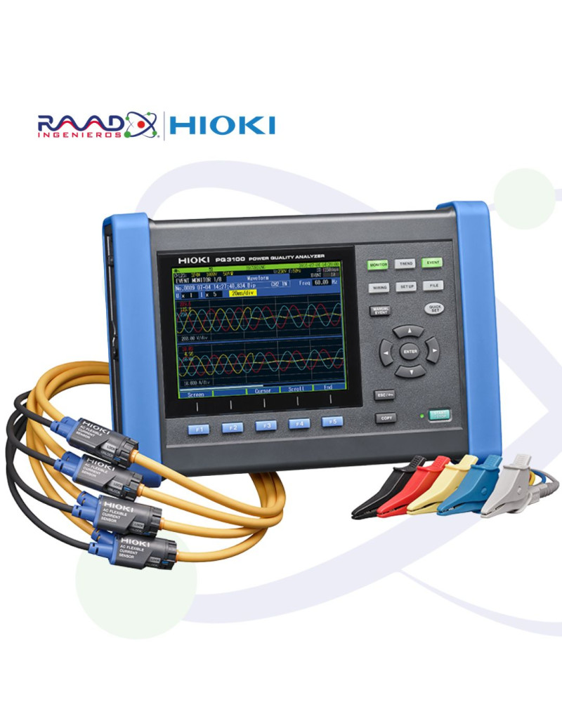 El analizador de calidad de energía Hioki PQ3100 mide todos los parámetros de energía, incluidos voltaje, corriente, potencia, armónicos y parpadeo simultáneamente a lo largo del mismo eje de tiempo, lo que le brinda la capacidad de capturar todas las anomalías de energía, como interrupciones intermitentes de energía, caídas de voltaje y fluctuaciones de frecuencia mientras graba. la tendencia del poder.