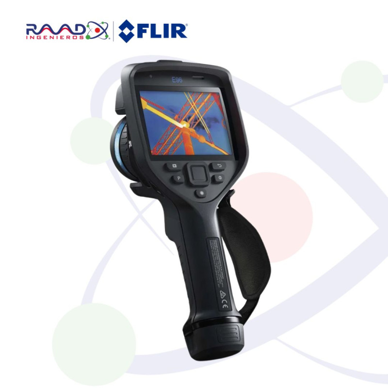 La FLIR E96 es la primera cámara con empuñadura de pistola y resolución térmica de 640 × 480, de modo que los inspectores puedan inspeccionar de forma segura objetivos peligrosos de alto voltaje y diagnosticar rápidamente fallas eléctricas y mecánicas.