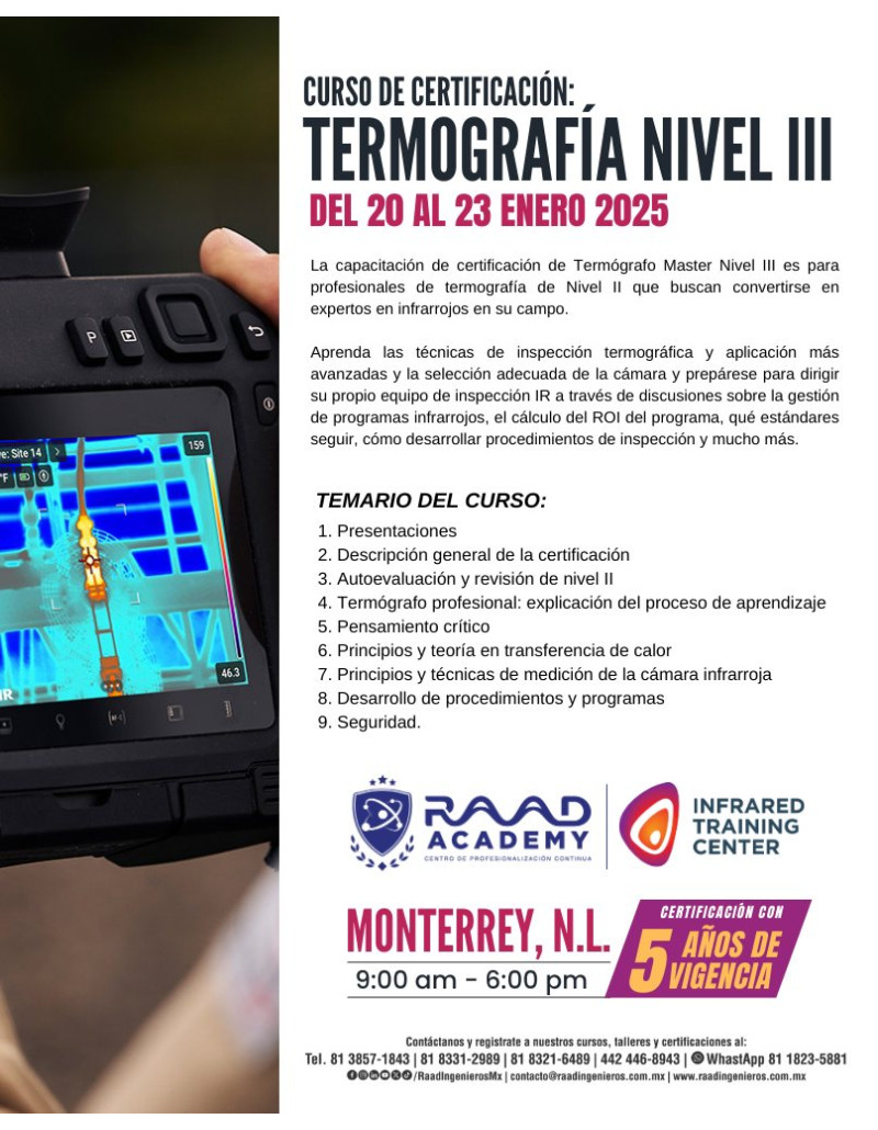 Transforma tu carrera con la Certificación Internacional en Termografía CAT III - Gerencial Premium de Infrared Training Center.