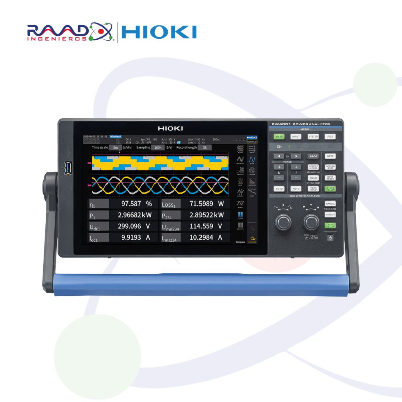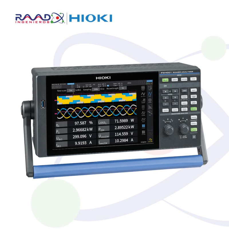 El PW4001 es un analizador de potencia portátil de 4 canales y alta precisión que ofrece la mayor precisión de CC jamás vista por Hioki: ±0,04 %. Además, su ancho de banda de medición alcanza los 600 kHz, manteniendo las especificaciones de precisión en todo este rango de frecuencias, lo que garantiza un rendimiento fiable tanto en aplicaciones de CC como de alta frecuencia. A pesar de su portabilidad, ofrece la precisión de medición necesaria tanto en investigación y desarrollo como en entornos de producción, lo que lo hace ideal para pruebas de campo, evaluaciones de laboratorio e inspección de líneas de producción.