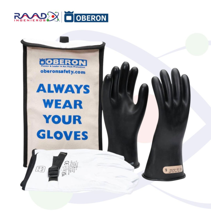 Los kits de guantes se fabrican con caucho natural y piel de cabra en instalaciones con certificación ISO. Los guantes aislantes de caucho que vende Oberon cumplen con las normas OSHA 1910.137, OSHA 1910.268, NFPA 70E y CSA Z462, y superan los estándares ASTM D120, ASTM F696 y la norma europea EN60903 para su uso en entornos con riesgos eléctricos y protección contra arco eléctrico. Los guantes de caucho natural tienen un puño enrollado de 28 cm (11") y un diseño anatómico que reduce la fatiga de la mano y ofrece las propiedades dieléctricas necesarias, además de flexibilidad, resistencia y durabilidad.