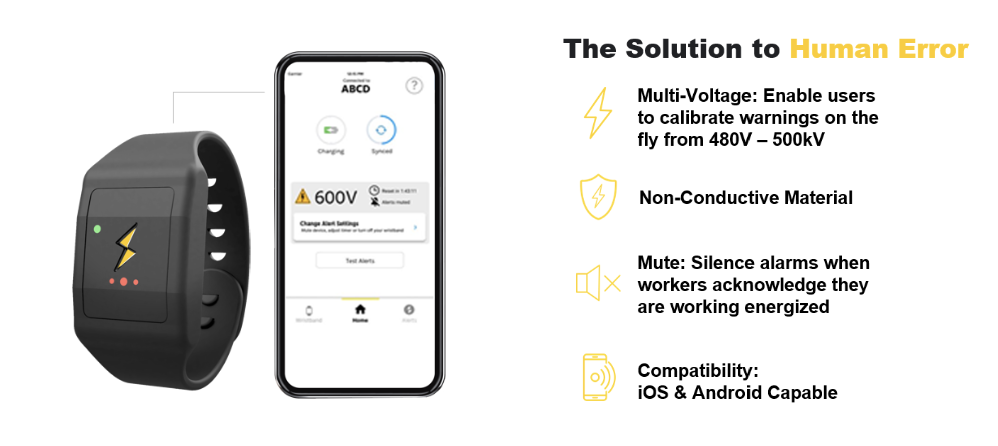 La pulsera emite alertas sonoras y luminosas en tiempo real para los trabajadores que se aproximan a zonas con tensión eléctrica, lo que proporciona una protección adicional ante cualquier imprevisto. Incluye una aplicación complementaria para personalizar la configuración y las alertas, y una suscripción de un año a un panel de análisis que ofrece datos prácticos para prevenir lesiones.