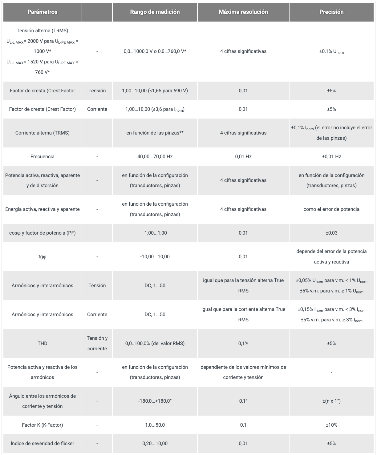 Armónicos hasta 50 en tensión y corriente.