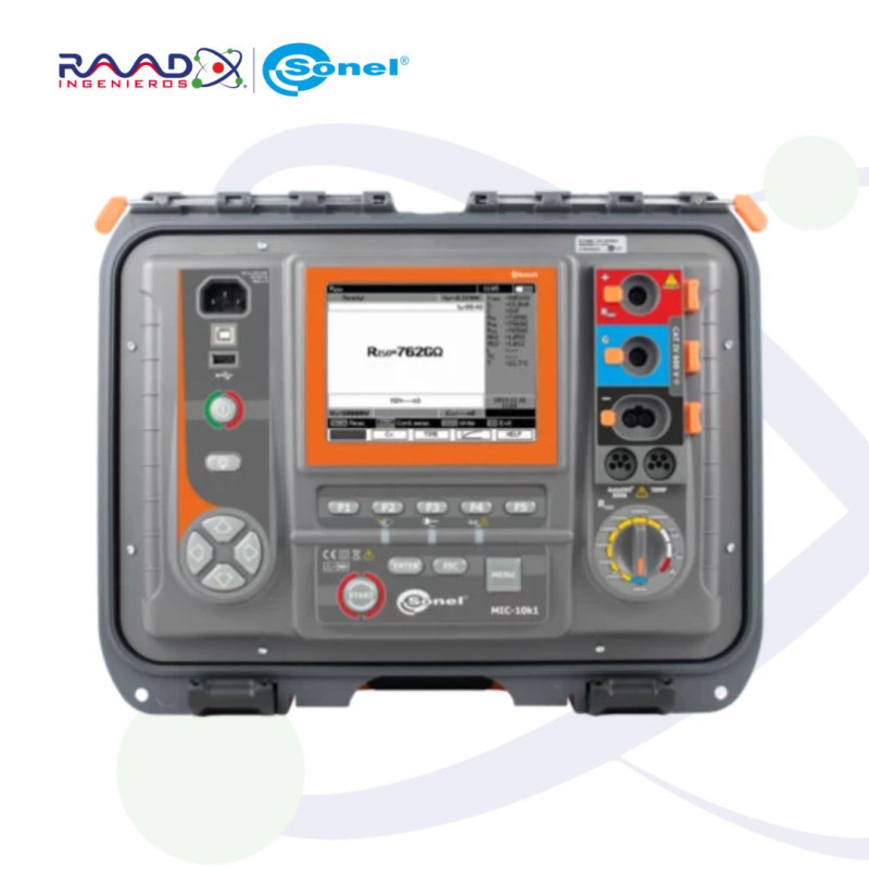 El equipo mide la temperatura del objeto probado, que es necesario para determinar el factor de corrección de temperatura para RISO. Además, indica el coeficiente de absorción (DAR - relación de absorción dieléctrica), el índice de polarización PI y el valor de descarga dieléctrica (DD). El dispositivo permite al usuario evaluar el estado del aislamiento, aplicando tensión de prueba de manera incremental en pasos (SV). Esta solución garantiza que un dieléctrico en buen estado proporcionará los mismos resultados, independientemente de la tensión aplicada. Las desviaciones en valores de resistencia obtenidos de aprox. el 25%, observado en la tabla en la tabla en los pasos individuales, puede indicar los defectos de aislación potenciales.