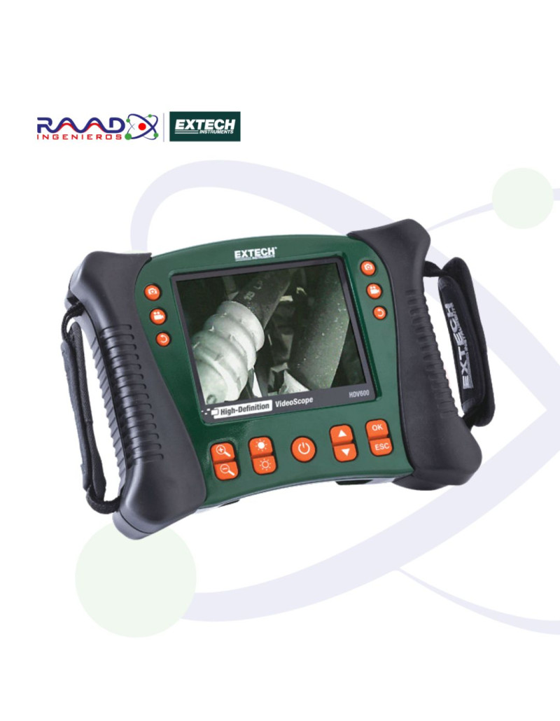 • LCD TFT a color de 5,7" con resolución de píxeles VGA de alta definición de 640 x 480. Completo con VideoScope, auricular inalámbrico, sonda de cámara de 25 mm, tarjeta SD, batería recargable de 3,7 V, cable de conexión, adaptador de CA (110-240 V, cuatro enchufes), USB y Cables AV y estuche rígido.